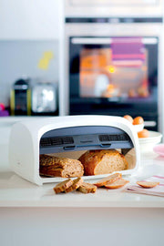El mejor pan El mejor pan Solución inteligente para optimizar la conservación del pan y las viennoiseries (sin embalaje). Membrana CondensControl™ que controla la humedad dentro de las cajas y evita por un lado la proliferación de moho, y por otro el secado prematuro. Tamaño adecuado que permite conservar todo tipo de pan. 4 pies antideslizantes para una buena estabilidad sobre la superficie de trabajo. Elementos desmontables para una limpieza fácil. Práctica, la Tabla de cortar (vendida por separado) se desliza debajo de la bandeja de la Caja panadera.