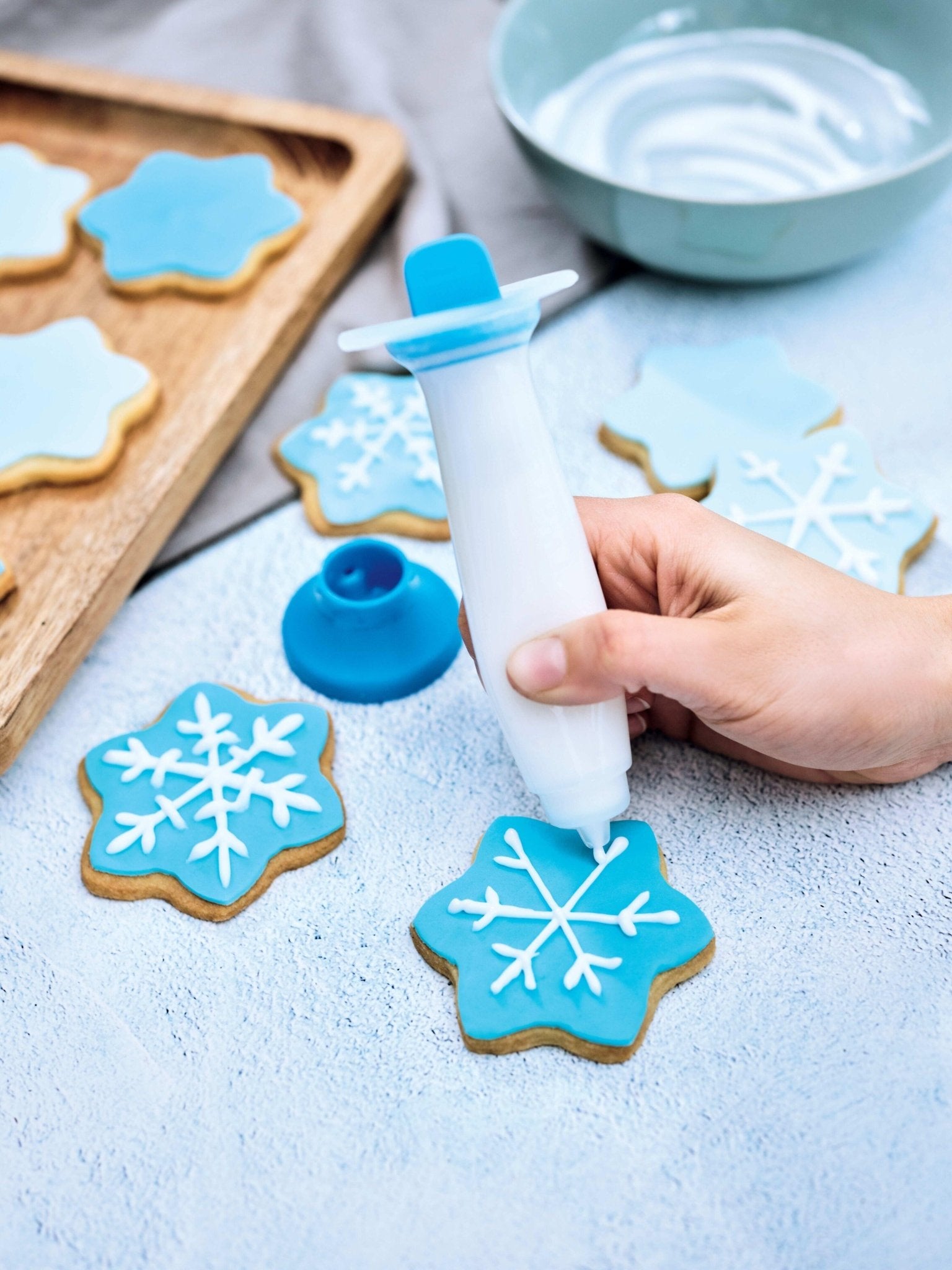 Decore pasteles, galletas y tortas como un profesional con el bolígrafo decorativo. Le permite crear remolinos decorativos, dibujos y mensajes dulces. Y transformar pasteles ordinarios en algo muy especial.