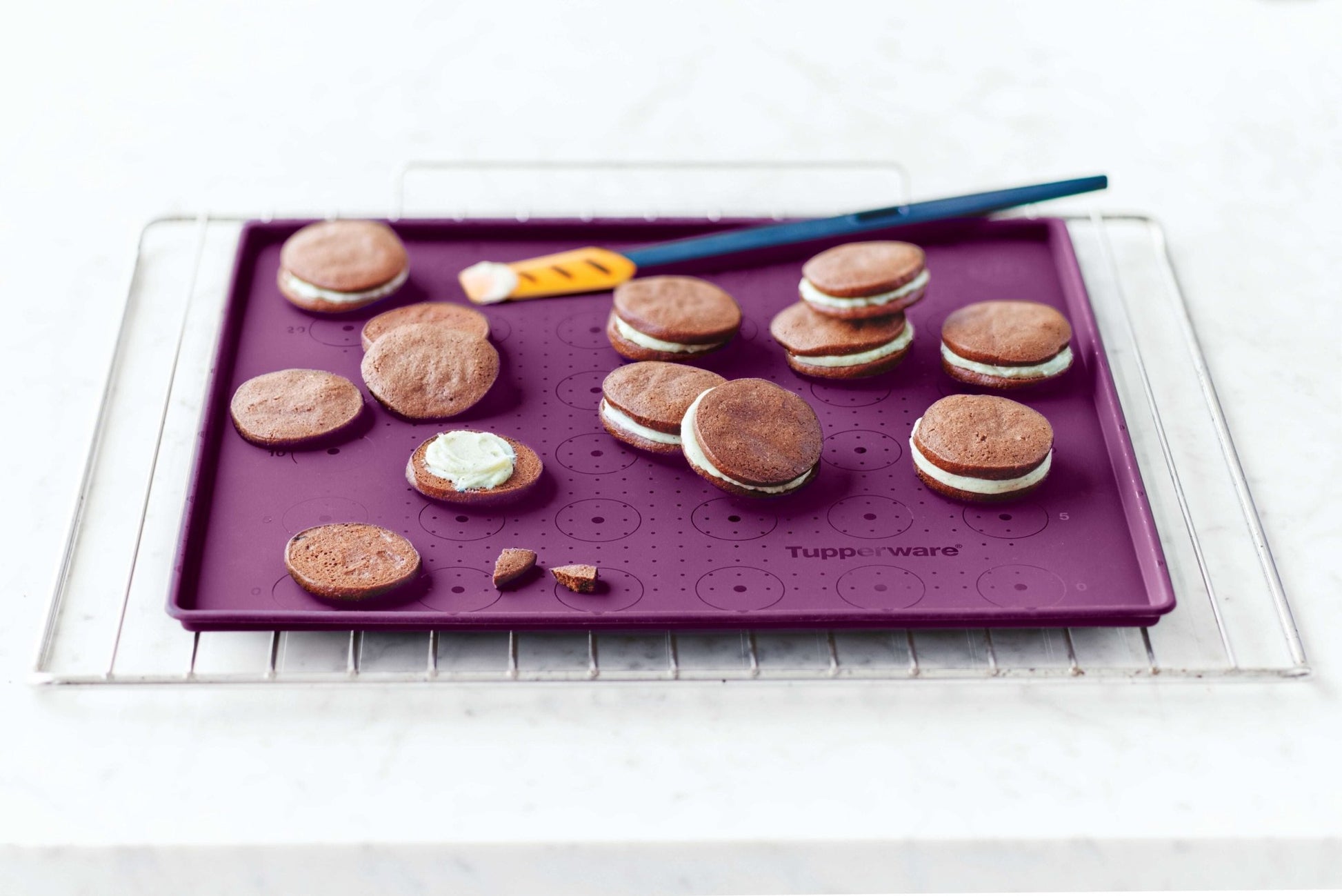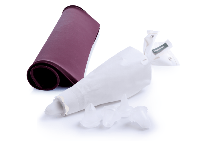 A Folha com rebordos de silicone Tupperware adapta-se a todos os tipos de preparação: pizza, bolo, macarons, carolinas, enrolados, petiscos... Graças à sua marcação, as suas preparações terão formas uniformes.