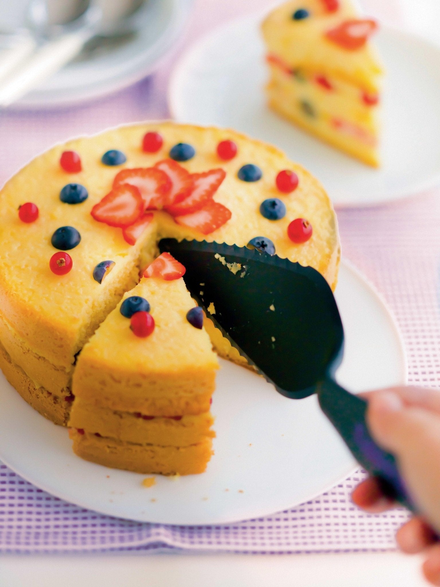 Possui dentes afiados nas bordas para cortar muitos tipos de bolos, quiches e pratos de forno como lasanhas ou moussaka. A pega robusta e ergonómica com aderência suave e a cabeça larga permitem porcionar e servir facilmente porções individuais.
