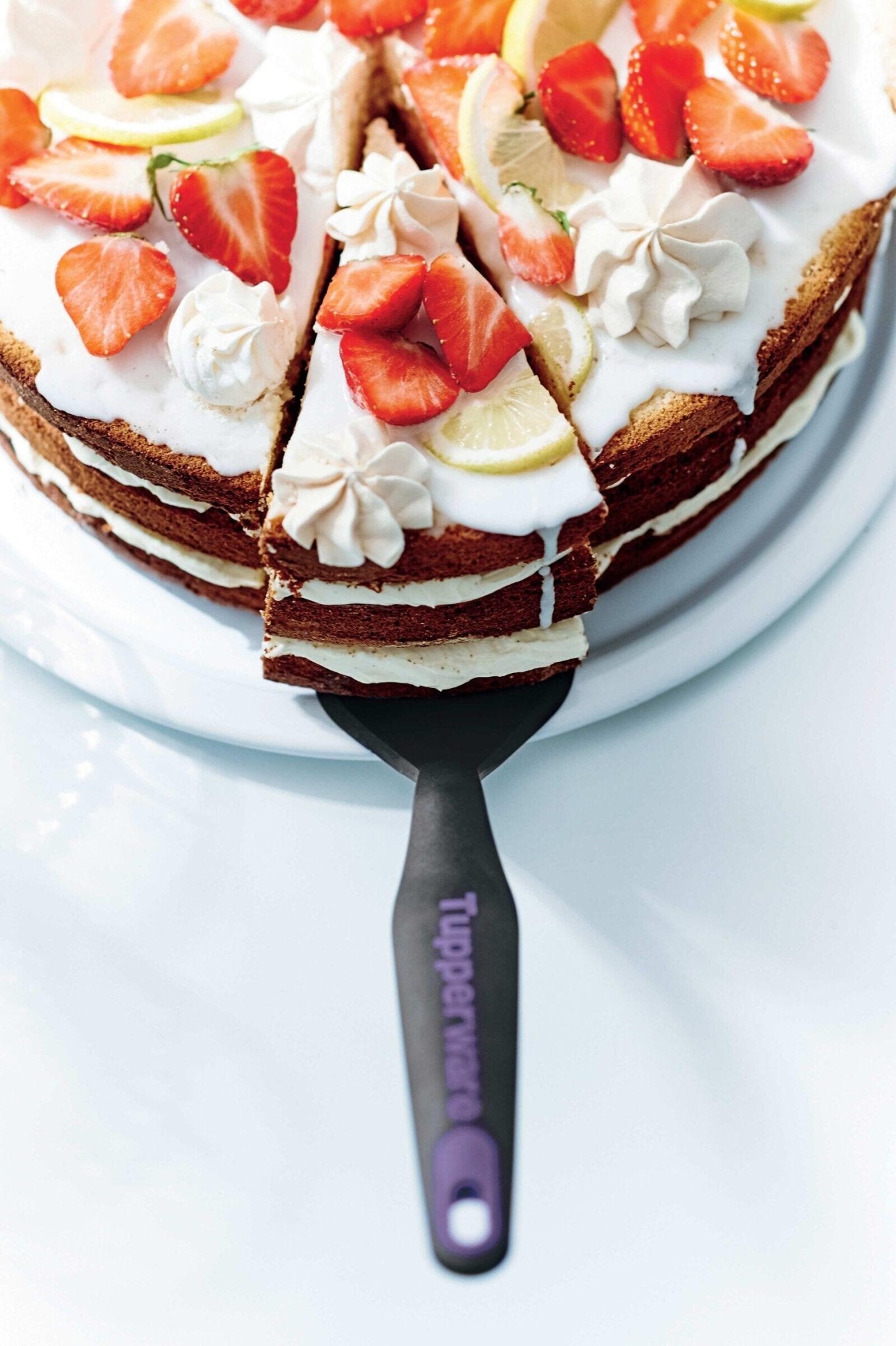 A Pá cortante Tupperware é a ferramenta ideal para cortar e servir bolos, bem como pratos salgados.