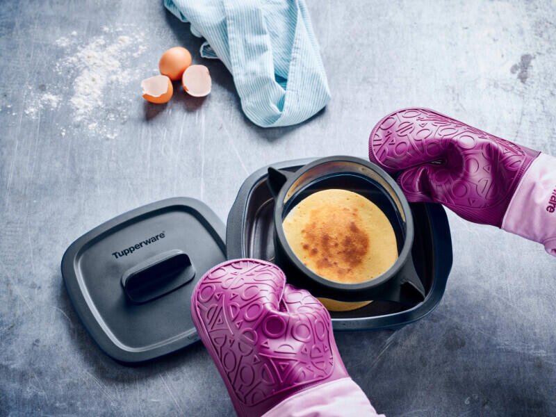 A luva de forno é o nosso guarda-costas para as suas mãos. Antiderrapante, leve e flexível, a Luva de silicone Tupperware é também suficientemente longa para permitir uma proteção máxima até ao antebraço!